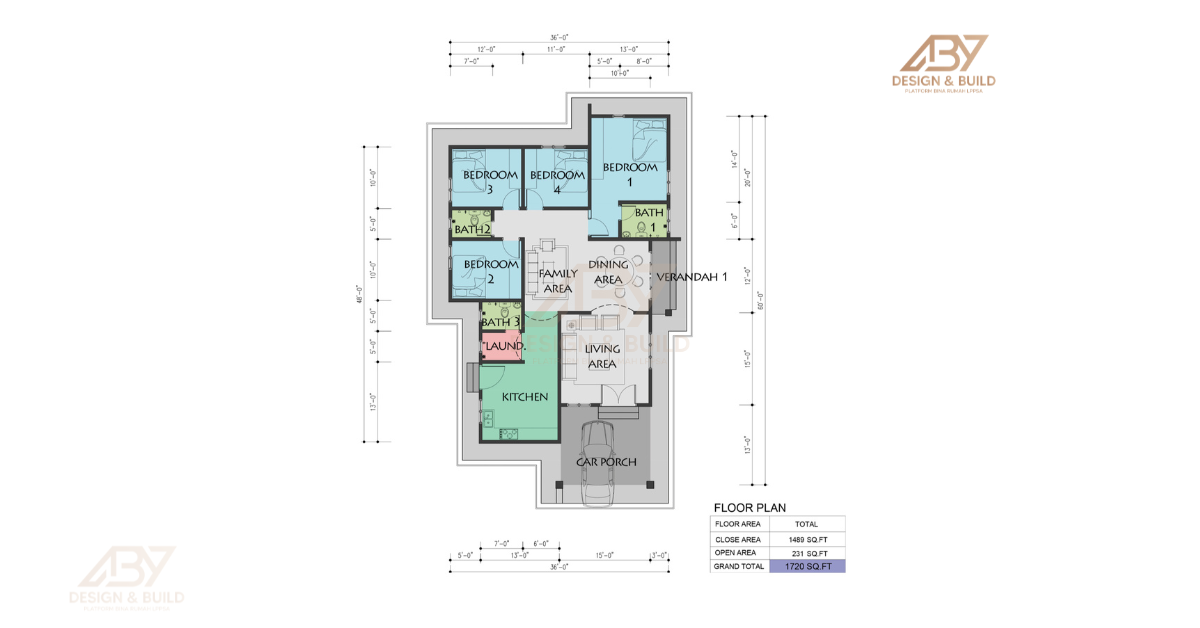 1720 sqft : 4 Bedroom, 3 Bathroom