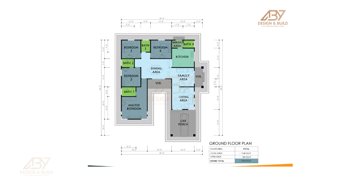 2105 sqft : 4 Bedroom, 4 Bathroom